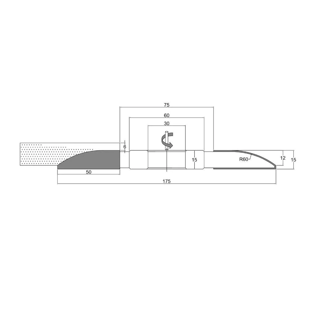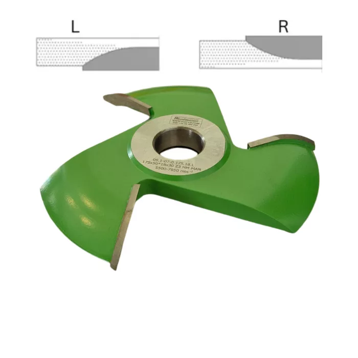 Abplattfräser 175x15x63x30 mm Z3 L links-unten HM HW für Massivholz, MDF und andere Holzwerkstoffe, Kunststoff, zur Herstellung von Paneelen und Türfüllungen für Rahmenkonstruktionen. Professionelles Fräswerkzeug für Tischfräsen zur Holzbearbeitung mit Hartmetall-Schneiden (vidia) und mit einfachem Profil.
