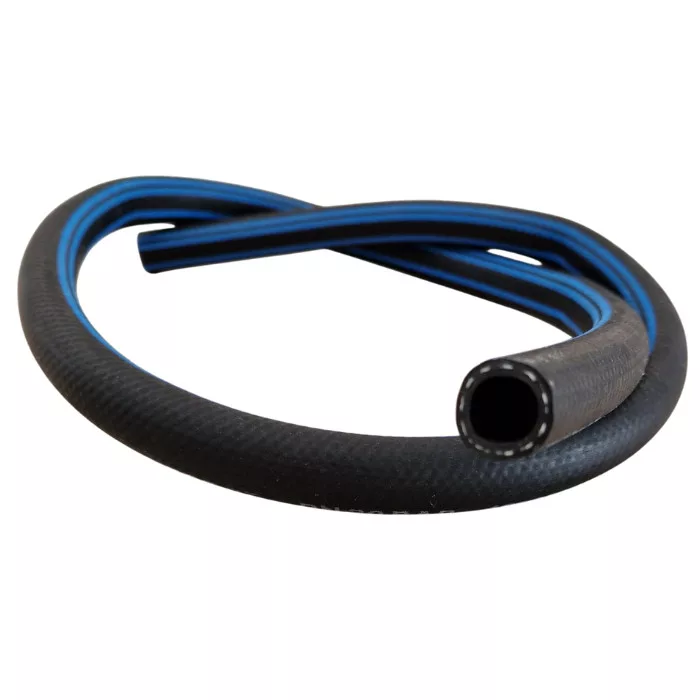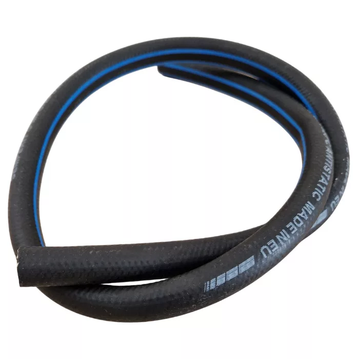 Universeller flexibler Gummischlauch mit einem Innendurchmesser von 16 mm und einem Außendurchmesser von 23 mm, geeignet für den Transport von Luft, Wasser und Chemikalien. Die glatte Innenfläche reduziert den Fließwiderstand und gewährleistet einen hervorragenden Transport, während die glatte Außenfläche ozon- und witterungsbeständig ist und somit eine langfristige Verwendung gewährleistet. Die elektrisch leitfähige Innen- und Außenkonstruktion verhindert den Aufbau statischer Elektrizität. Dieser schwarze Flexschlauch ist mit einem kräftigen, kreuzgewebten synthetischen Textil verstärkt, um die Stabilität und Langlebigkeit des Universalschlauchs zu gewährleisten. Er hat einen Temperaturbereich von -40 bis +100 Grad Celsius, kurzzeitig ist er bis +120°C einsetzbar und bietet somit ein breites Anwendungsspektrum. Sein Betriebsdruck beträgt 20 bar und gewährleistet dank dieses hohen Wertes einen zuverlässigen Betrieb in verschiedenen Umgebungen. Seine Vielseitigkeit und seine hervorragende Alterungs- und Verschleißfestigkeit machen ihn ideal für den Einsatz in Industrie, Landwirtschaft und Haushalt.
