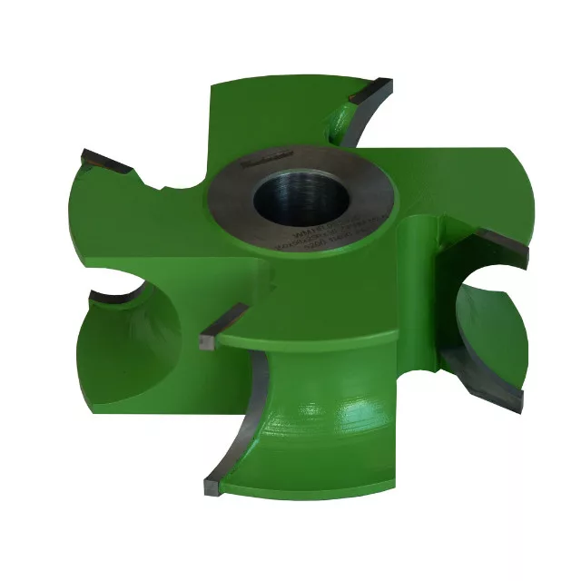 Konkaver Halbstabfräser mit 12,5 mm Radius, 125 mm Durchmesser, 25 mm Breite, 4 Messern, HM, mit gelöteten Schneidplatten, mit Durchmesser Bohrung von 30 mm. Woodmaster Fräskopf in Industriequalität für die Holzbearbeitung mit Tigra Germany Hartmetall-Schneiden.