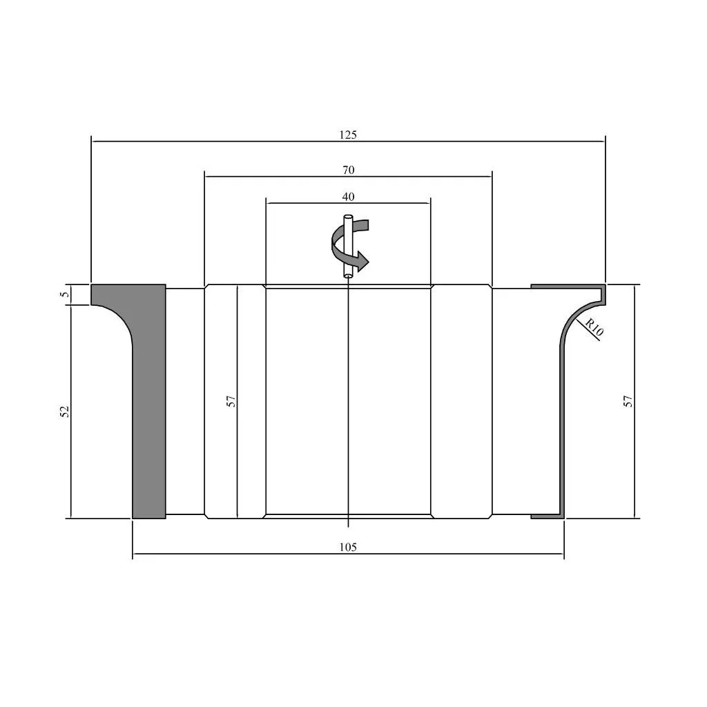 Radienfräser mit 10 mm Radius, 125 mm Durchmesser, 57 mm Breite, 3 Messern, HM, mit gelöteten Schneidplatten, mit Durchmesser Bohrung von 40 mm. Woodmaster Fräskopf in Industriequalität für die Holzbearbeitung mit Tigra Germany Hartmetall-Schneiden.