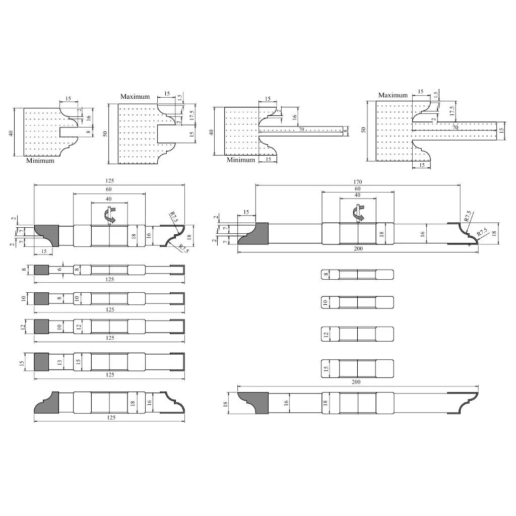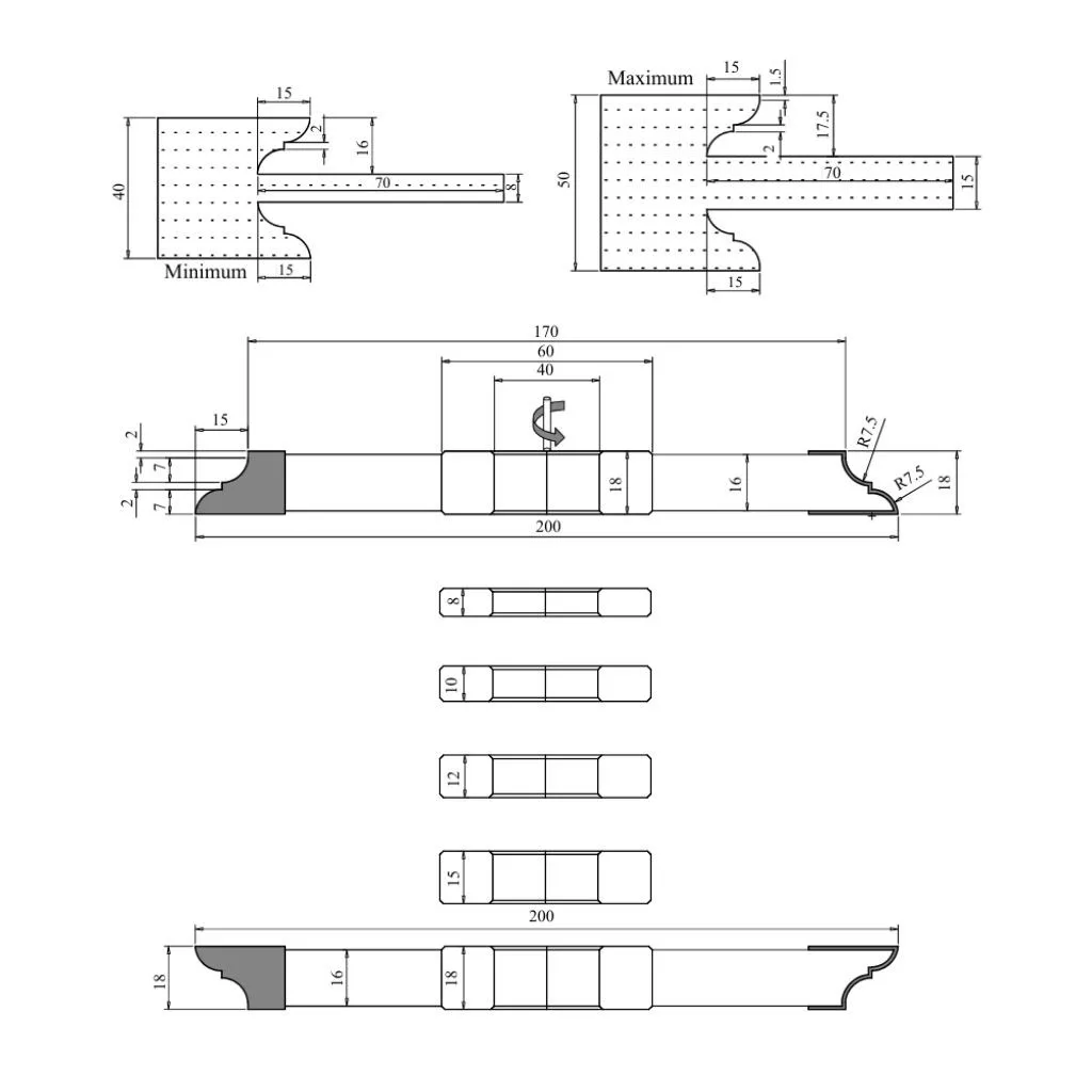 Türenfräser Set mit HM-Vidia-Schneiden: Wählen Sie HM-Fräser in Industriequalität für die Bearbeitung von Massivholz, MDF und anderen agglomerierten Produkten und Holzwerkstoffen. Fräser aus Hartmetall (Wolframkarbid) zeichnen sich durch extreme Härte und hohe Verschleißfestigkeit aus. Dies macht diese Fräswerkzeuge zu einer hervorragenden Wahl zum Schneiden von Massivholz, Halbhartholz und Hartholz (wie Eiche, Akazie, Ulme, Buche, Ahorn, Walnuss), Weichholz (wie Kiefer, Zeder, Zypresse, Pappel, Linde), laminierten Holzwerkstoffen (wie laminierte Spanplatten, furnierte Spanplatten, MDF, Sperrholz) sowie Kunststoffen und Verbundwerkstoffen (wie PVC, Acryl).
