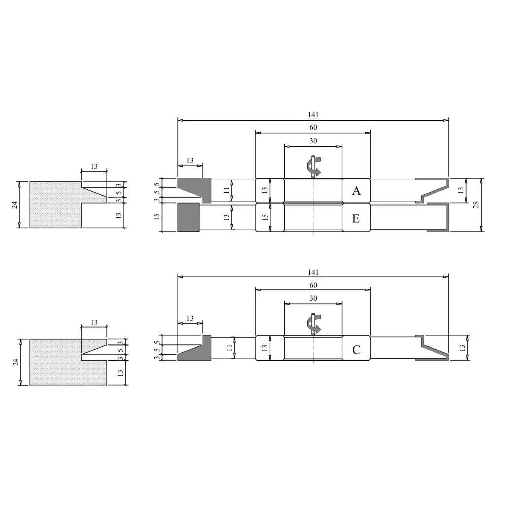 Profil-Konterprofil Fräserset mit HM-Vidia-Schneiden: Wählen Sie HM-Fräser in Industriequalität für die Bearbeitung von Massivholz, MDF und anderen agglomerierten Produkten und Holzwerkstoffen. Fräser aus Hartmetall (Wolframkarbid) zeichnen sich durch extreme Härte und hohe Verschleißfestigkeit aus. Dies macht diese Fräswerkzeuge zu einer hervorragenden Wahl zum Schneiden von Massivholz, Halbhartholz und Hartholz (wie Eiche, Akazie, Ulme, Buche, Ahorn, Walnuss), Weichholz (wie Kiefer, Zeder, Zypresse, Pappel, Linde), laminierten Holzwerkstoffen (wie laminierte Spanplatten, furnierte Spanplatten, MDF, Sperrholz) sowie Kunststoffen und Verbundwerkstoffen (wie PVC, Acryl).