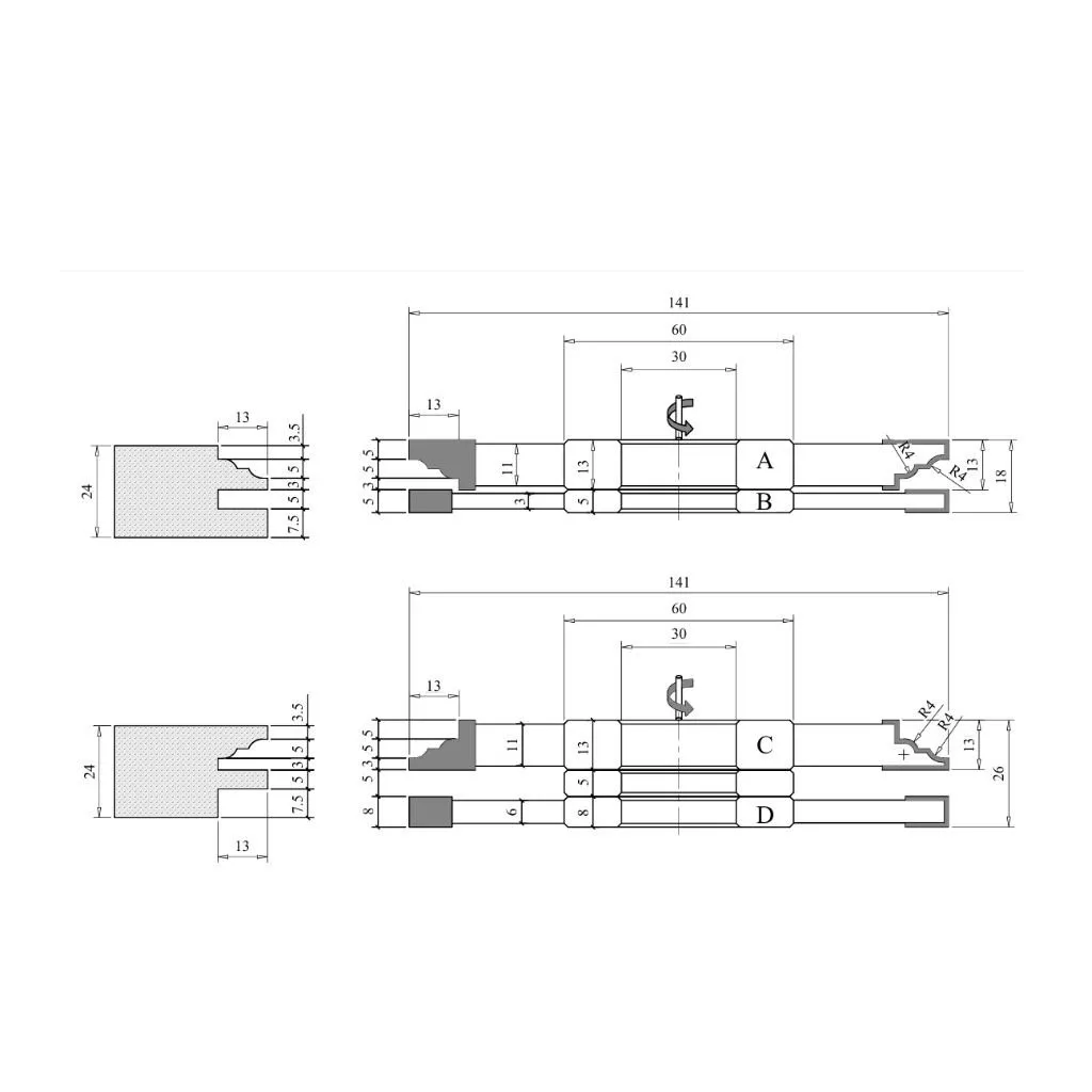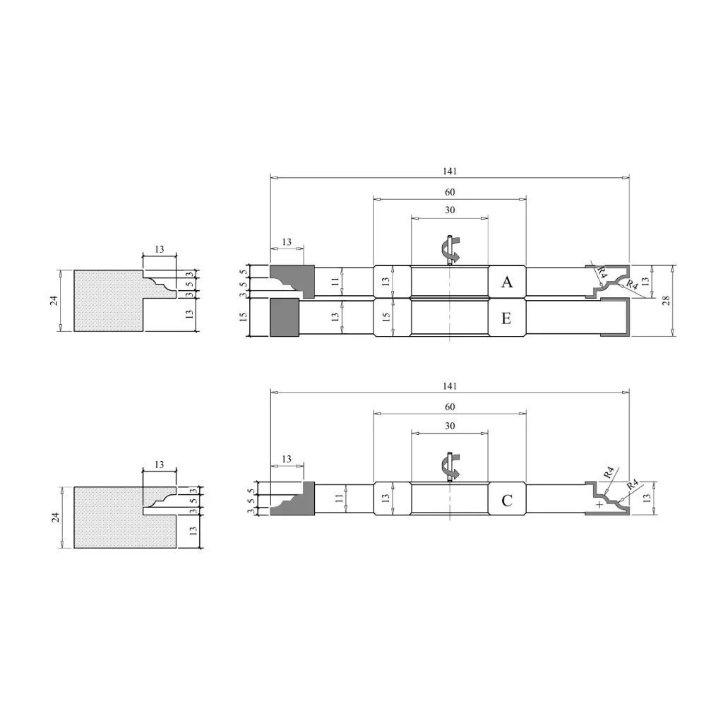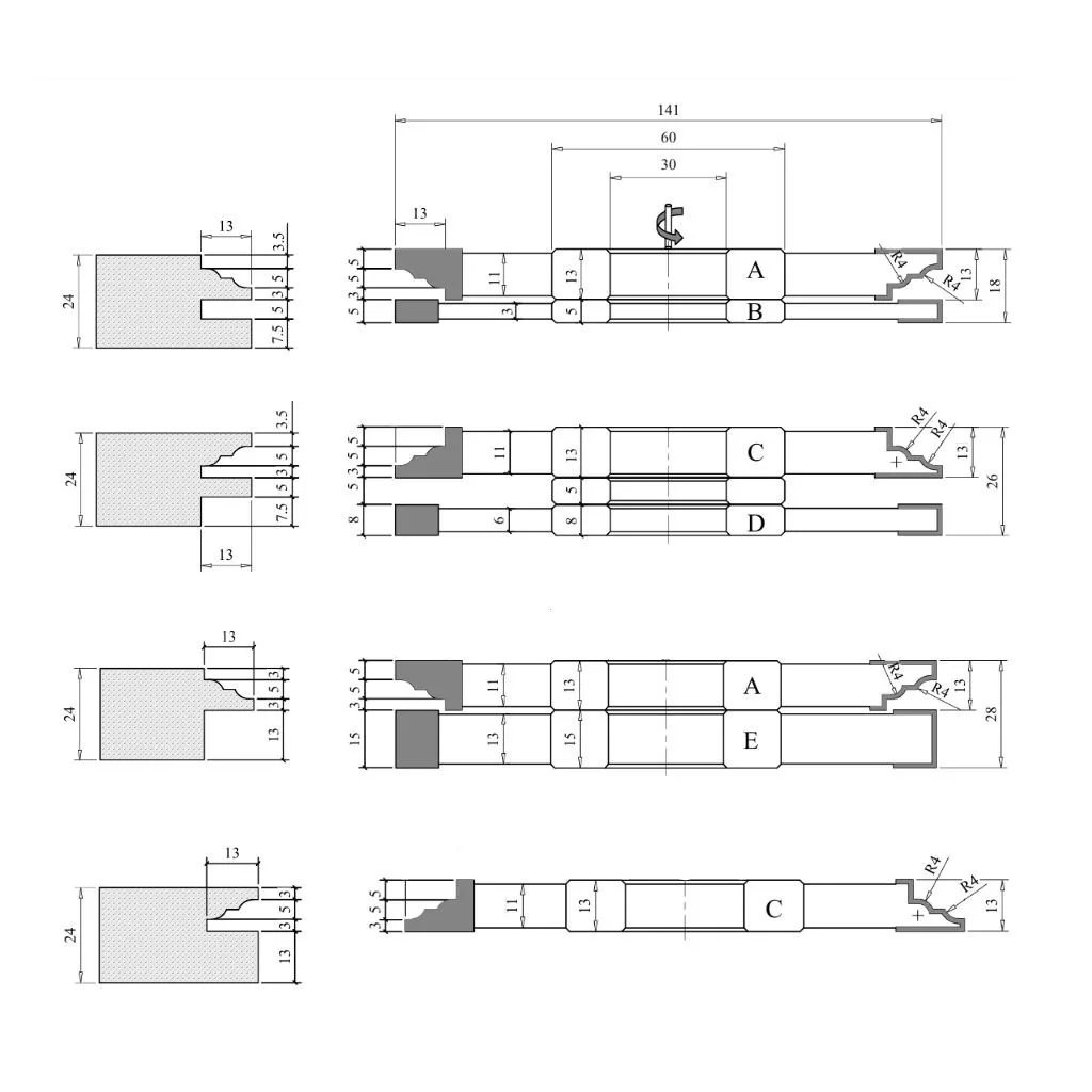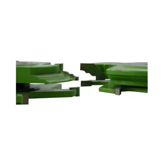 Profil-Konterprofil Fräserset mit HM-Vidia-Schneiden: Wählen Sie HM-Fräser in Industriequalität für die Bearbeitung von Massivholz, MDF und anderen agglomerierten Produkten und Holzwerkstoffen. Fräser aus Hartmetall (Wolframkarbid) zeichnen sich durch extreme Härte und hohe Verschleißfestigkeit aus. Dies macht diese Fräswerkzeuge zu einer hervorragenden Wahl zum Schneiden von Massivholz, Halbhartholz und Hartholz (wie Eiche, Akazie, Ulme, Buche, Ahorn, Walnuss), Weichholz (wie Kiefer, Zeder, Zypresse, Pappel, Linde), laminierten Holzwerkstoffen (wie laminierte Spanplatten, furnierte Spanplatten, MDF, Sperrholz) sowie Kunststoffen und Verbundwerkstoffen (wie PVC, Acryl).