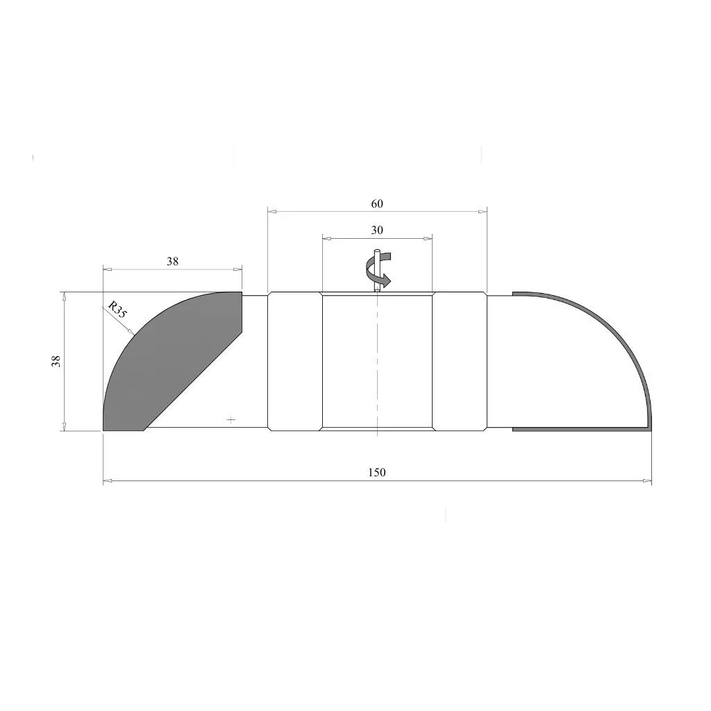 Konvexer Viertelstabfräser mit 35 mm Radius, 150 mm Durchmesser, 38 mm Breite, 3 Messern, L (links), HM, mit gelöteten Schneidplatten, mit Durchmesser Bohrung von 30 mm. Woodmaster Fräskopf in Industriequalität für die Holzbearbeitung mit Tigra Germany Hartmetall-Schneiden.